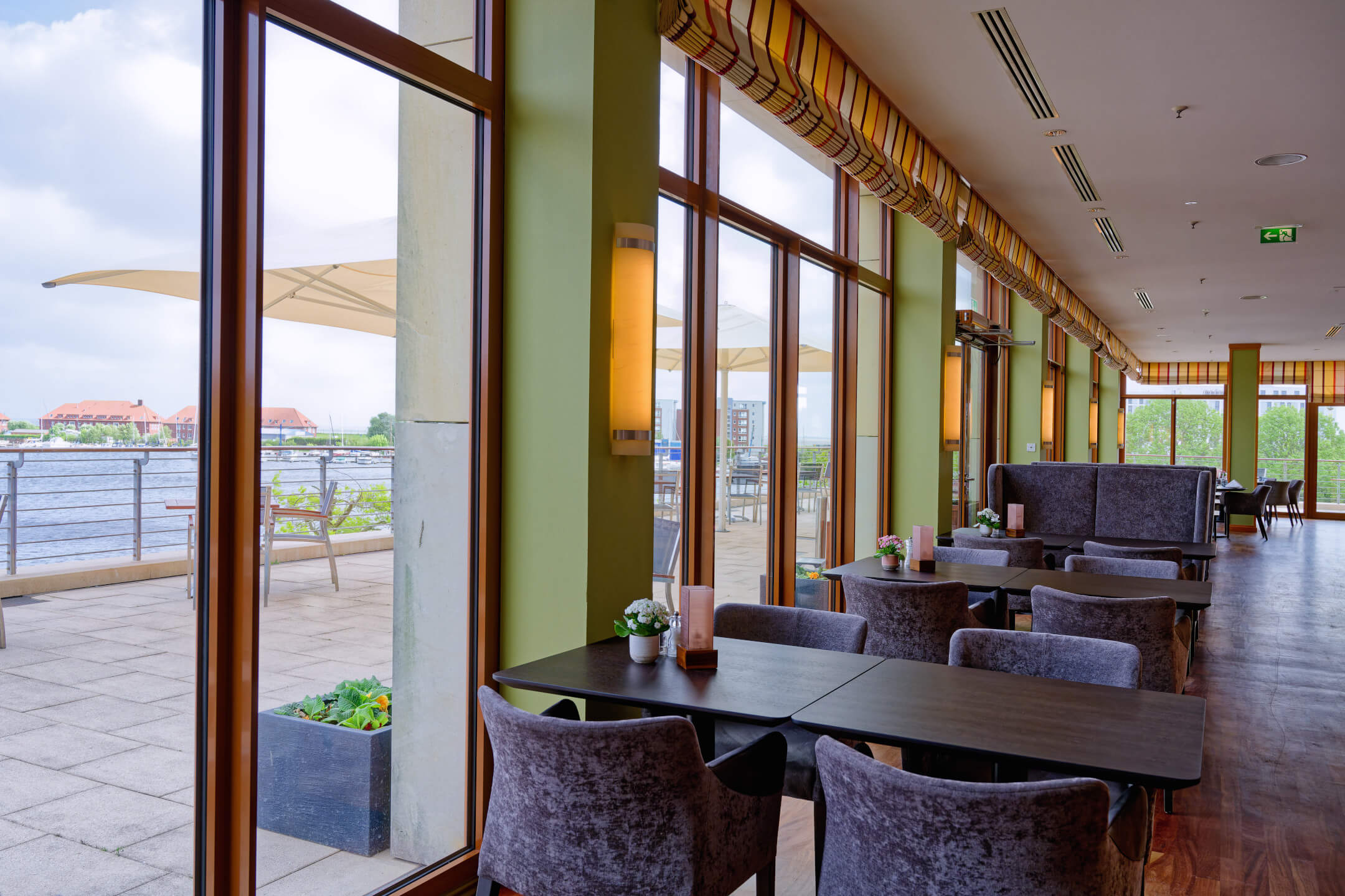 Das Restaurant HARBOUR VIEW, mit angrenzender Sonnenterrasse, begeistert nicht nur durch den einmaligen Blick über den großen Hafen und auf die Kaiser-Wilhelm-Brücke, sondern auch durch eine Vielfalt an gesunden und kreativen Gerichten, die mit hochwertigen Zutaten und viel Liebe zum Detail zubereitet werden. Wir arbeiten eng mit lokalen Partnern zusammen, um Ihnen stets die beste Qualität zu bieten. Ob Sie allergieverträgliche Speisen, vegane oder vegetarische Gerichte bevorzugen – bei uns finden Sie immer etwas Passendes. Das Séparée mit Blick auf den Garten und den Banter See bietet den idealen Rahmen für Ihre privaten oder geschäftlichen Feierlichkeiten.