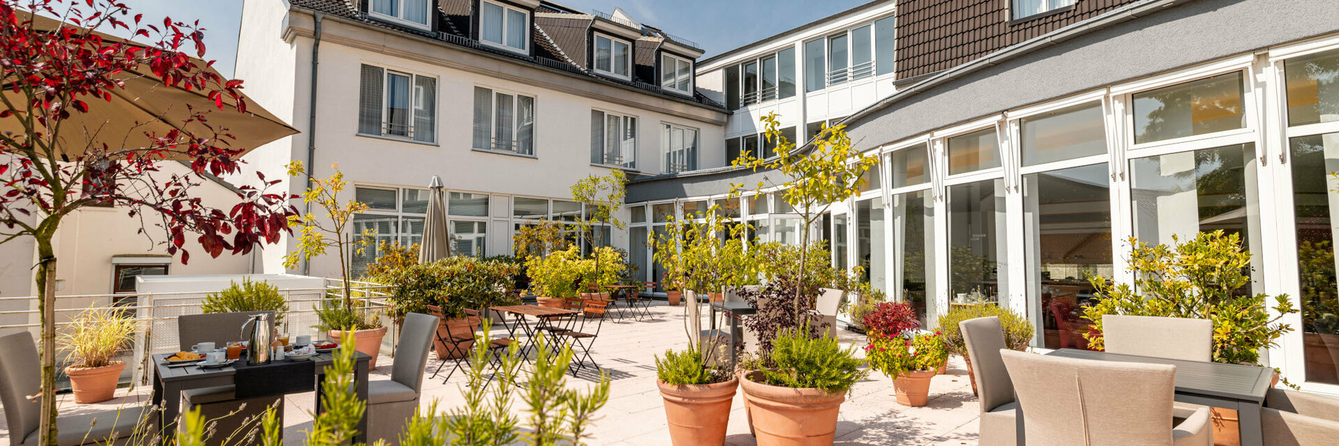 Starten Sie gut in den Tag – ab 6:00 Uhr in der Woche und ab 7:30 Uhr am Wochenende! An unserem abwechslungsreichen Frühstücksbuffet können Sie sich Ihre Lieblingsspeisen individuell zusammenstellen. In der Sommersaison haben Sie die Möglichkeit, Ihr Frühstück auf unserer großzügigen, grünen Terrasse einzunehmen. Auch unser Coffee-to-go steht für Ihren Start in den Tag bereit.