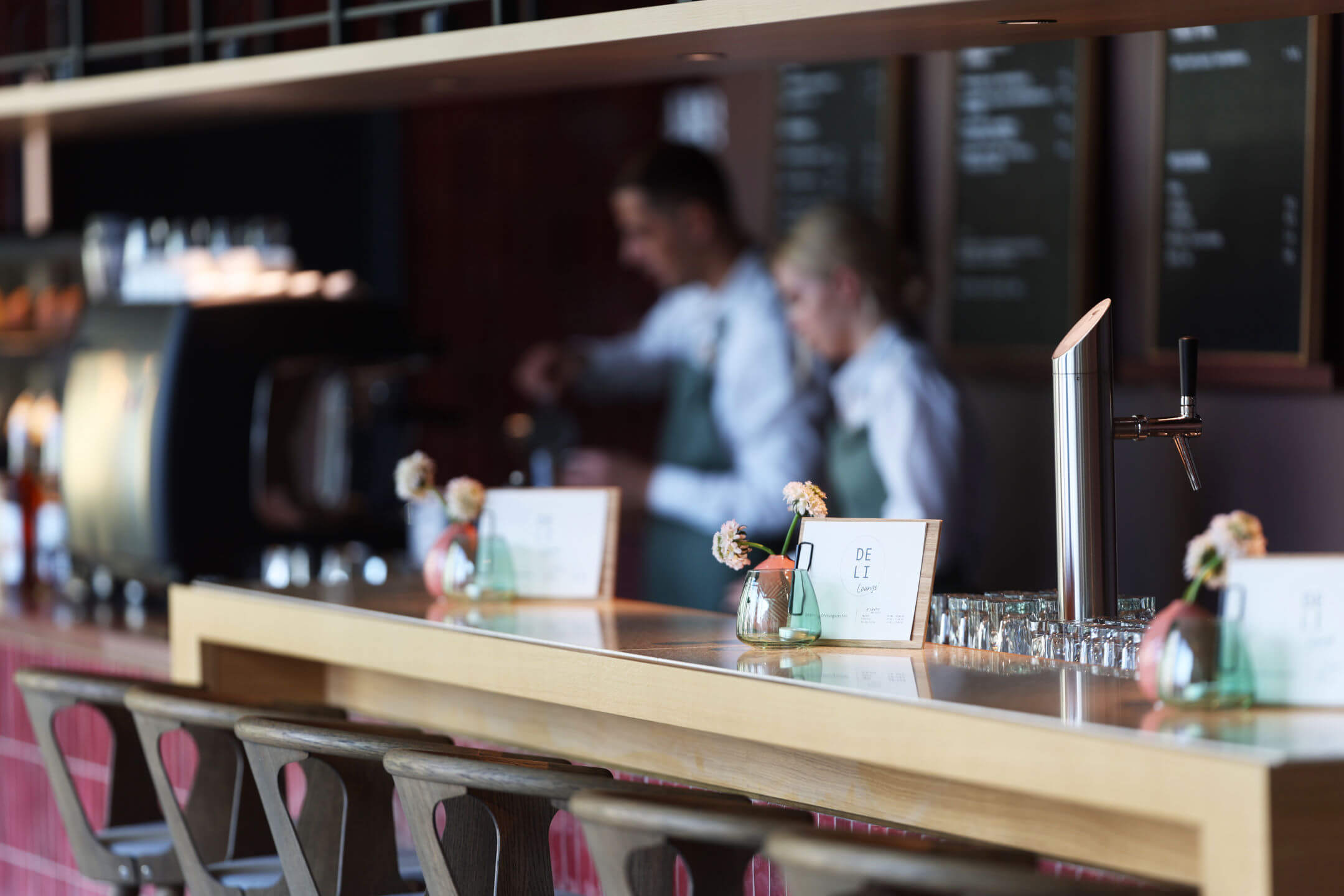 In unserer Deli Lounge mit Terrasse auf dem Europaplatz können Sie sich tagsüber auf hausgerösteten Barista Kaffee und herrlich duftende Zimtschnecken, frisch getoastete Bagels und Sandwiches sowie auf bunte Salate und Bowls, Eiscreme und Wein aus der Region freuen.