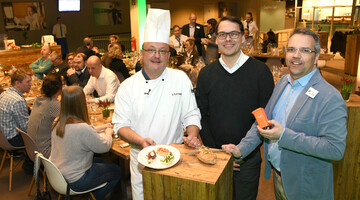 Küchenchef Dominik Flettner: „Wir sensibilisieren und schulen nicht nur laufend unser Küchenteam, sondern mit unserem gleichermaßen schmackhaften wie unterhaltsamen Resteessen auch unsere Dienstleister, Geschäftspartner und Vertreter aus Politik und Verwaltung.“ Davon konnten sich gestern Abend rund 40 geladene Gäste überzeugen und lernten das Engagement von Flettner und seinem Team Gang für Gang kennen. Fachliche Unterstützung lieferte Torsten von Borstel, United Against Waste e.V., der mit seinem bundesweit tätigen Verein Lösungen zur Vermeidung von Lebensmittelverschwendung entwickelt. Von Borstel steuerte jede Menge aufschlussreiche Fakten bei, die sich bei einem köstlichen mehrgängigen Menü auf unterhaltsame Weise verdauen ließen.